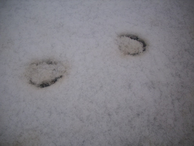 Sì perché ieri sono venuti giù un tre cm di neve, giusto quello che serve per farmela spalare nello spiazzo davanti casa prima che provveda Nonna continuando a calzare le ciabatte. Oggi è quasi tutta sciolta ma nella passeggiata mattutina ho visto tracce che mi hanno fatto tornare indietro a prendere la fotocamera.