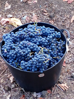 Fatto sta che ne abbiamo colta una certa dose, quanta abbiamo valutato bastasse, ovvero 4 "capazos" ben colmi. Un "capazo" è un contenitore con manici, un mastello insomma, della capacità nominale di 40 litri, che usiamo per molte attività diverse, ma ne teniamo sempre da parte qualcuno pulito per la vendemmia.