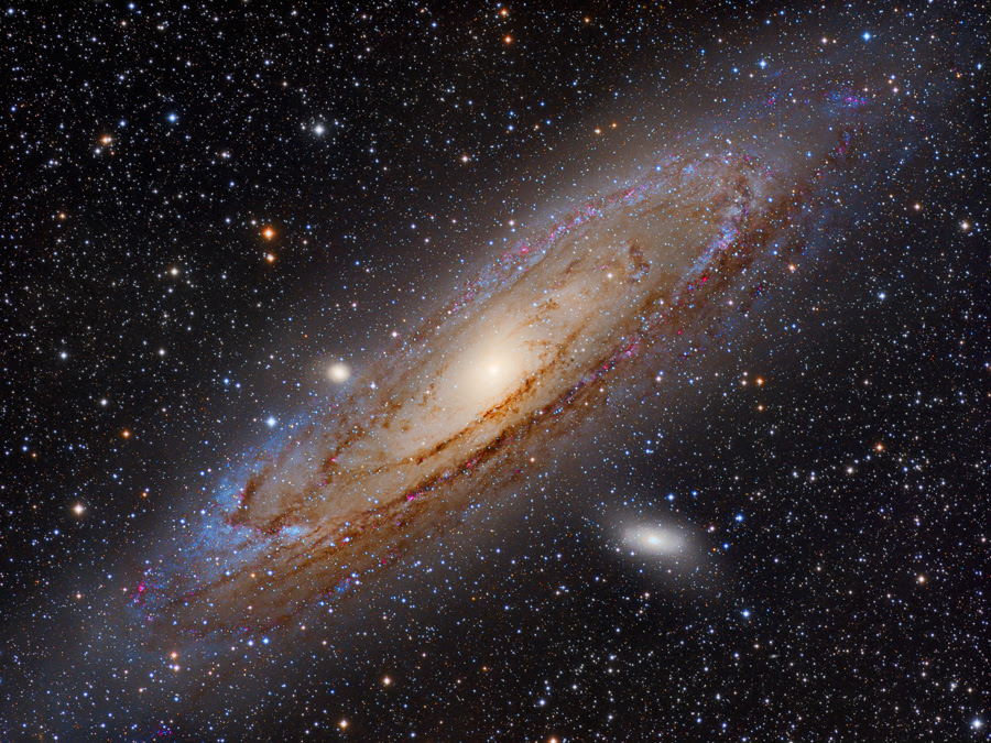 Dimenticavo i diritti di autore: la straordinaria immagine di M31 è dell'amico Leonardo Orazi, e la trovate qui - strettamente consigliato scaricarla a risoluzione completa. M33, poverina, è mia; il resto da Wiki, santa Wikipedia di noi ignoranti.