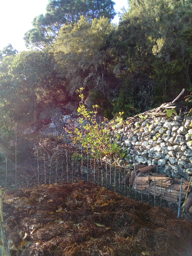 Per fortuna questa guazza è stata sufficiente a bagnare almeno la superficie dello strato di "pinocha" e foglie secche e residui vegetali triturati che prima dell'arrivo delle piogge si usa stendere sugli orti perché durante l'inverno macerandosi e maturando produca nuovo terriccio. La "pinocha" è fatta dagli aghi secchi dei pini, stratificati nel tempo, la parte più vicina al terreno è piuttosto triturata e lavorata dalle intemperie e a volte è già di per sé un terriccio.